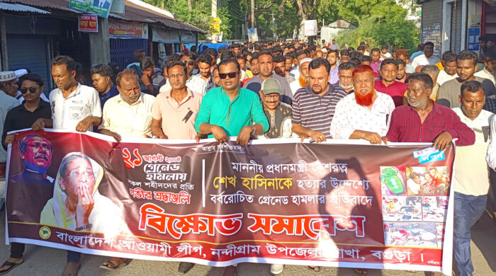 ২০০৪ সালের ২১ আগষ্ট বর্বরোচিত গ্রেনেড হামলায় আইভি রহমানসহ ২৪ জন নেতাকর্মী হত্যার প্রতিবাদে বগুড়ার নন্দীগ্রামে বিক্ষোভ সমাবেশ, দোয়া মাহফিল ও আলোচনা সভা অনুষ্ঠিত হয়েছে। রোববার বিকেলে নন্দীগ্রাম উপজেলা আওয়ামী