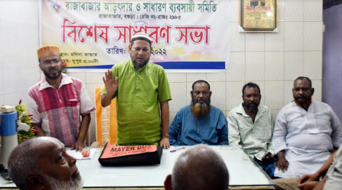 বগুড়ায় রাজাবাজার আড়ৎদার ও সাধারণ ব্যবসায়ী সমিতির(রেজিঃ নং ২৯৮৫) বিশেষ সাধারণ সভায় ৮ সদস্য বিশিষ্ট নির্বাচন পরিচালনা কমিটি গঠন করা হয়েছে। বৃহস্পতিবার দুপুরে রাজাবাজারে সংগঠনের অস্থায়ী কার্যালয়ে অনুষ্ঠিত বিশেষ সাধারণ
