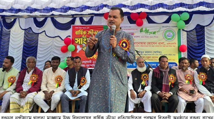 বগুড়ার নন্দীগ্রামে থালতা মাজগ্রাম দ্বিমুখী উচ্চ বিদ্যালয়ের বার্ষিক ক্রীড়া প্রতিযোগিতা ও সাংস্কৃতিক অনুষ্ঠান সম্পন্ন হয়েছে। বৃহস্পতিবার বিকেলে বিদ্যালয় চত্বরে পুরস্কার বিতরণী অনুষ্ঠানে প্রধান অতিথির বক্তব্য রাখেন জেলা ক্রীড়া সংস্থার যুগ্ম