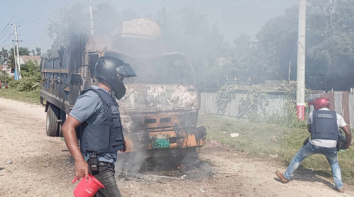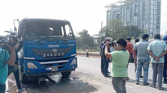 বিএনপি ও জামায়াতের ডাকা অবরোধের দ্বিতীয় দিন বগুড়া সদরে মালবাহী একটি ট্রাকে মুখোশ পরে আগুন দিয়েছে দুর্বৃত্তরা। বুধবার দুপুরে ঢাকা-রংপুর মহাসড়কের বাঘোপাড়া এলাকায় ট্রাকে আগুন দিয়ে তারা পালিয়ে যায়। খবর