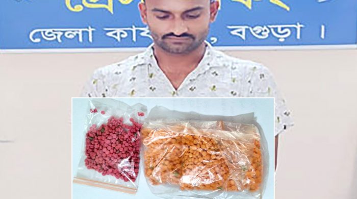 বগুড়ায় দুই হাজার সাতশত পয়ষট্টি পিস ইয়াবাসহ এক যুবককে গ্রেফতার করেছে বগুড়া মাদকদ্রব্য নিয়ন্ত্রণ অধিদপ্তর কার্যালয়ের একটি আভিযানিক দল। গ্রেফতারকৃত ব্যক্তি, রংপুর জেলার পীরগঞ্জ থানার শ্রীরামপুর পশ্চিমপাড়া এলাকার গোলজার রহমানের