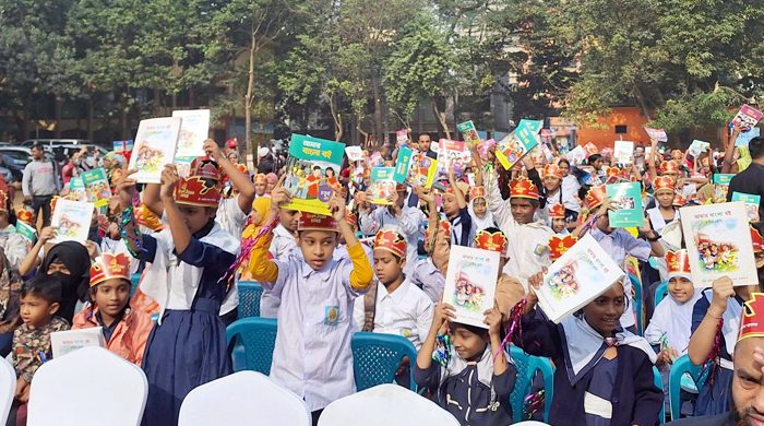 বছরের প্রথম দিনে নতুন বই হাতে পেয়ে উচ্ছ্বসিত শিক্ষার্থীরা