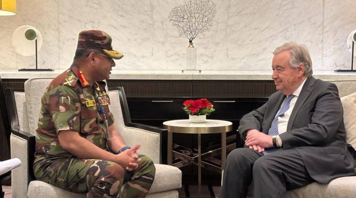 মুক্তজমিন ডিজিটাল রিপোর্ট : জাতিসংঘের মহাসচিব আন্তোনিও গুতেরেসের সঙ্গে শনিবার ( ১৫ মার্চ ) সেনাবাহিনী প্রধান জেনারেল ওয়াকার-উজ-জামান, এসবিপি, ওএসপি, এসজিপি, পিএসসি সৌজন্য সাক্ষাৎ করেছেন। সৌহার্দ্যপূর্ণ এ বৈঠকে পারস্পরিক কুশল