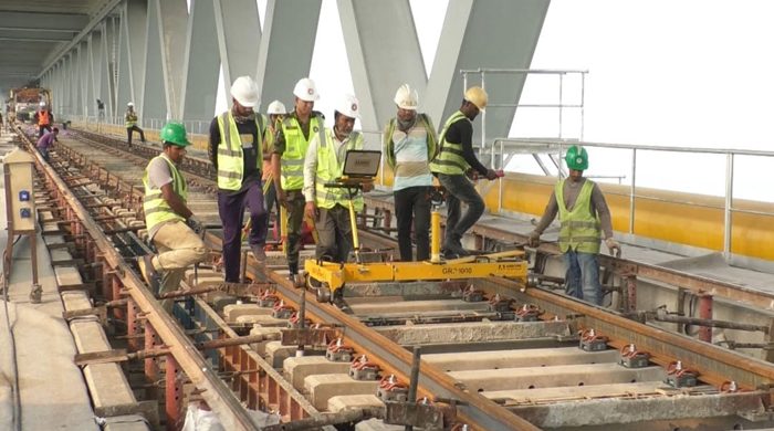 আর মাত্র বাকি একটি স্লিপার। মাত্র ৭ মিটারের স্লিপারটি সফলভাবে বসে গেলে শতভাগ সম্পন্ন হবে পদ্মা সেতুতে পাথরবিহীন রেললাইন স্থাপনের কাজ। তবে এই অংশটুকু ঢালাই করা হয়নি একটি স্লিপারের অভাবে।
