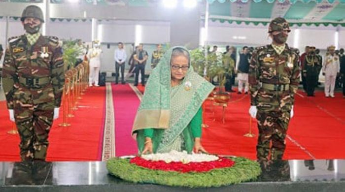মহান স্বাধীনতা ও জাতীয় দিবস উপলক্ষে জাতির জনক বঙ্গবন্ধু শেখ মুজিবুর রহমানের প্রতিকৃতিতে শ্রদ্ধা নিবেদন করেছেন প্রধানমন্ত্রী শেখ হাসিনা। আজ রোববার সকালে সাভারের জাতীয় স্মৃতিসৌধ থেকে ফিরে প্রধানমন্ত্রী রাজধানীর ধানমন্ডি