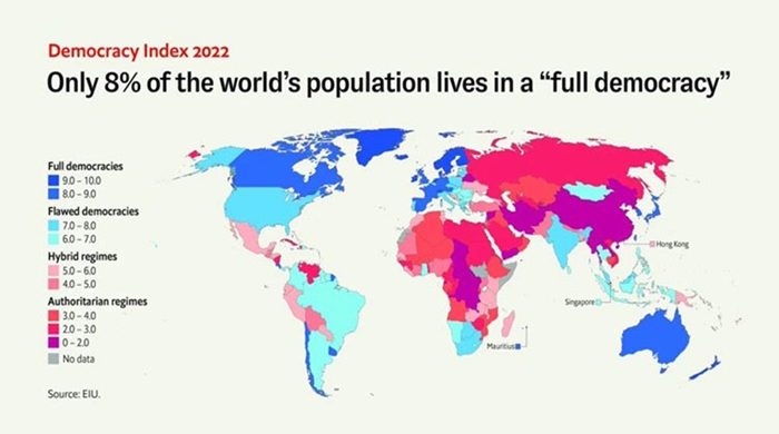 বৈশ্বিক গণতন্ত্র সূচকে দুই ধাপ এগিয়েছে বাংলাদেশ। বর্তমানে সূচকটিতে বাংলাদেশের অবস্থান ৭৩তম। ১৬৭টি দেশ ও অঞ্চল নিয়ে এবারের সূচক তৈরি করা হয়েছে। সূচকে ১০-এর মধ্যে বাংলাদেশের স্কোর ৫ দশমিক ৯৯।