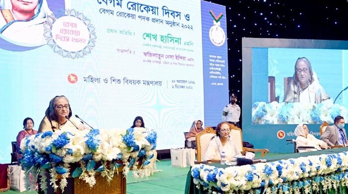 ঢাকা: উন্নত ও সমৃদ্ধ বাংলাদেশ গড়ার প্রত্যয় পুনর্ব্যক্ত করেছেন প্রধানমন্ত্রী শেখ হাসিনা। শুক্রবার (৯ ডিসেম্বর) সকালে রাজধানীর ওসমানী স্মৃতি মিলনায়তনে ‘বেগম রোকেয়া দিবস ও বেগম রোকেয়া পদক প্রদান অনুষ্ঠান ২০২২’-এ