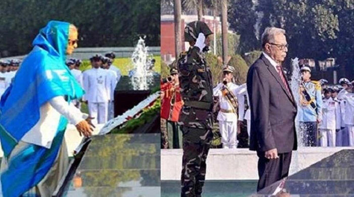 শিখা অনির্বাণে রাষ্ট্রপতি ও প্রধানমন্ত্রীর শ্রদ্ধা নিবেদন