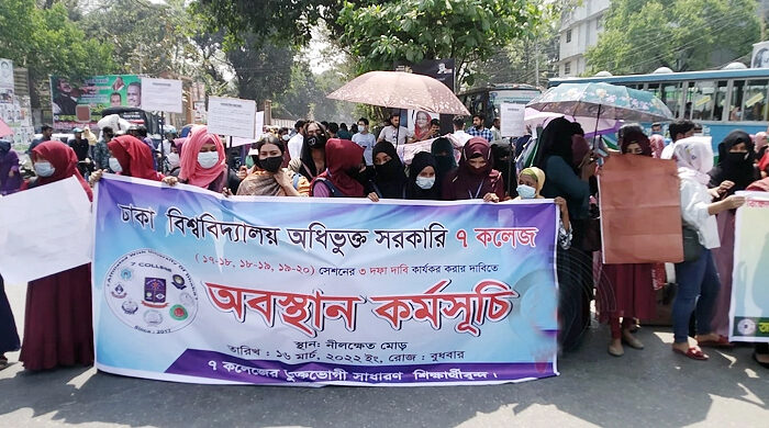 তিন দফা দাবিতে নীলক্ষেত মোড় অবরোধ করেছেন ঢাকা বিশ্ববিদ্যালয়ের অধিভুক্ত রাজধানীর সাত কলেজের অনার্স ১৯-২০, ১৮-১৯ ও ১৭-১৮ সেশনের দর্শন বিভাগের শিক্ষার্থীরা। বুধবার (১৬ মার্চ) বেলা ১১টায় নীলক্ষেত মোড়ে শিক্ষার্থীরা