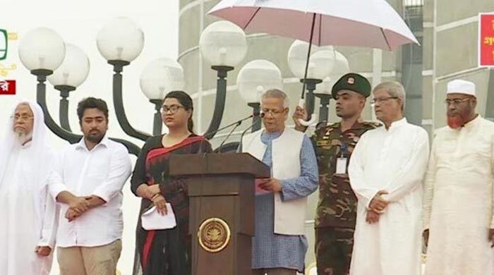 মুক্তজমিন ডিজিটাল রিপোর্ট:মানবাধিকার লঙ্ঘনকারীদের বিচার নিশ্চিত করার প্রত্যয় ব্যক্ত করে প্রধান উপদেষ্টা প্রফেসর ড. মুহাম্মদ ইউনূস বলেছেন, সংস্কারের পাশাপাশি জুলাইয়ে গুরুতর মানবাধিকার লঙ্ঘনের জন্য দায়ীদের আইনের আওতায় আনতে আমরা বদ্ধপরিকর। তিনি